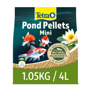 Use Tetra Pond Pellets 'small' for fish under 20cm, and 'medium' for fish over 20cm. In mixed ponds, feed a combination of pellet sizes.